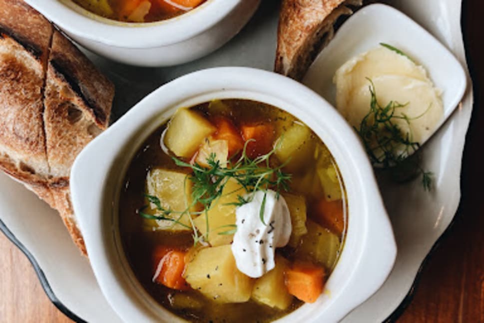 Terravita Kitchen offers a breakfast menu that showcases its commitment to farm-to-table dining with various wholesome and flavourful dishes. A standout option is the Sourdough Pancakes, crafted from their house-made sourdough starter, providing a unique twist on a breakfast classic. For those seeking a savoury start, the Breakfast Skillet combines fresh, locally sourced vegetables with eggs and herbs, creating a hearty and satisfying meal. The Breakfast Burger features a house-made patty topped with farm-fresh eggs and greens, all in a freshly baked bun. Additionally, the Huevos Rancheros offers a delightful blend of eggs, beans, and salsa, reflecting a fusion of local ingredients with international flavours. Complementing these dishes, patrons can enjoy a selection of freshly baked pastries and a variety of coffee beverages, including the popular Maple Latte, to round out their morning experience.