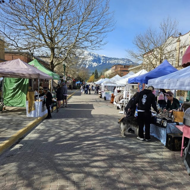 The Revelstoke Farm & Craft Market, founded in 1985, operates every Saturday from May through October at Grizzly Plaza. Vendors offer a range of products, all made, baked, or grown locally. Shoppers can find fresh produce, baked goods, meats, eggs, honey, and handcrafted items.