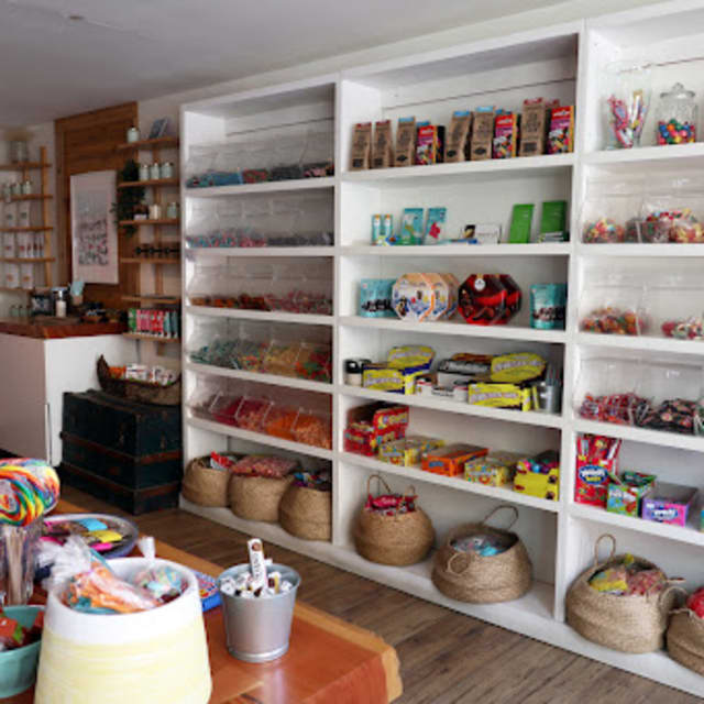 Sugar Shack Revelstoke is a charming spot in downtown Revelstoke, BC, offering a delightful mix of coffee, candy, and ice cream. The interior features a long wall lined with candy, complemented by a coffee and ice cream bar, a window bar, and a cozy seating nook. Their menu includes dairy-free vanilla ice cream, homemade ice cream sandwiches, and Dose Coffee Beans.